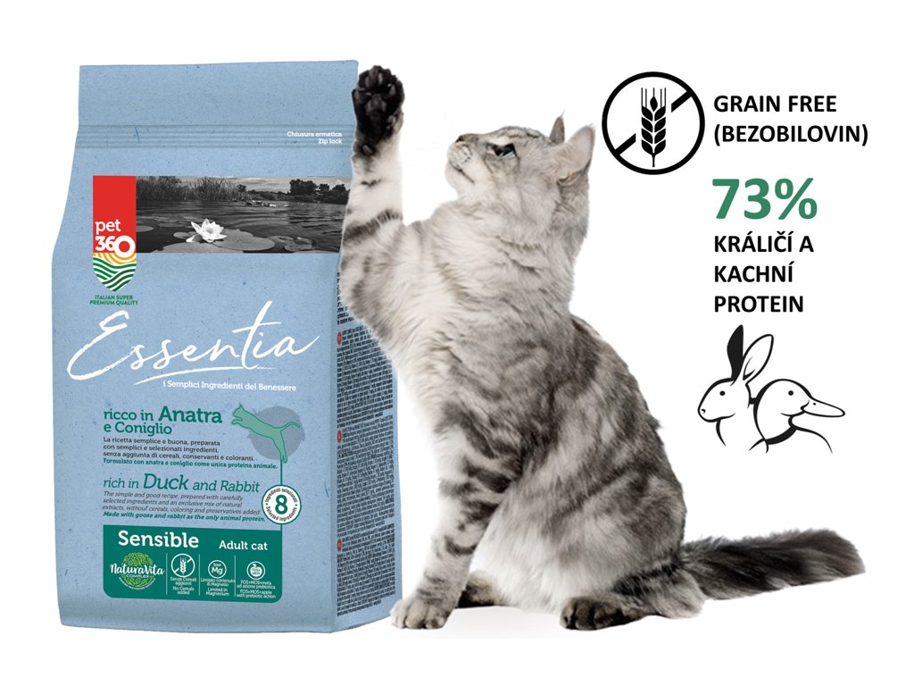 Essentia kočka-citlivé zažívání-kachna a králík 1,5Kg