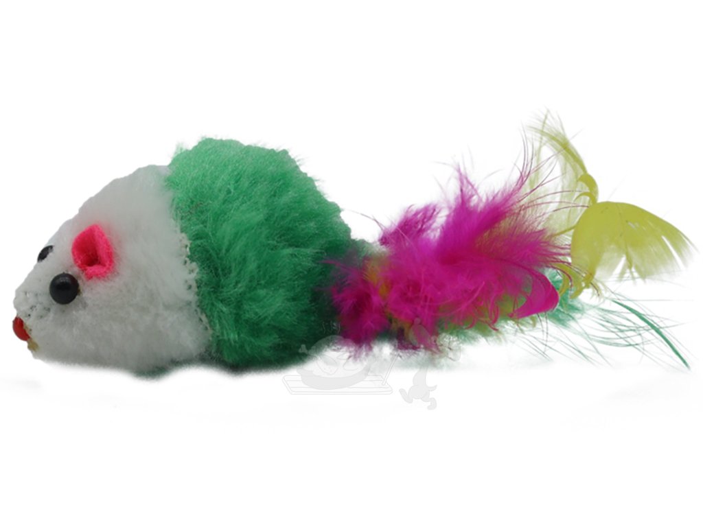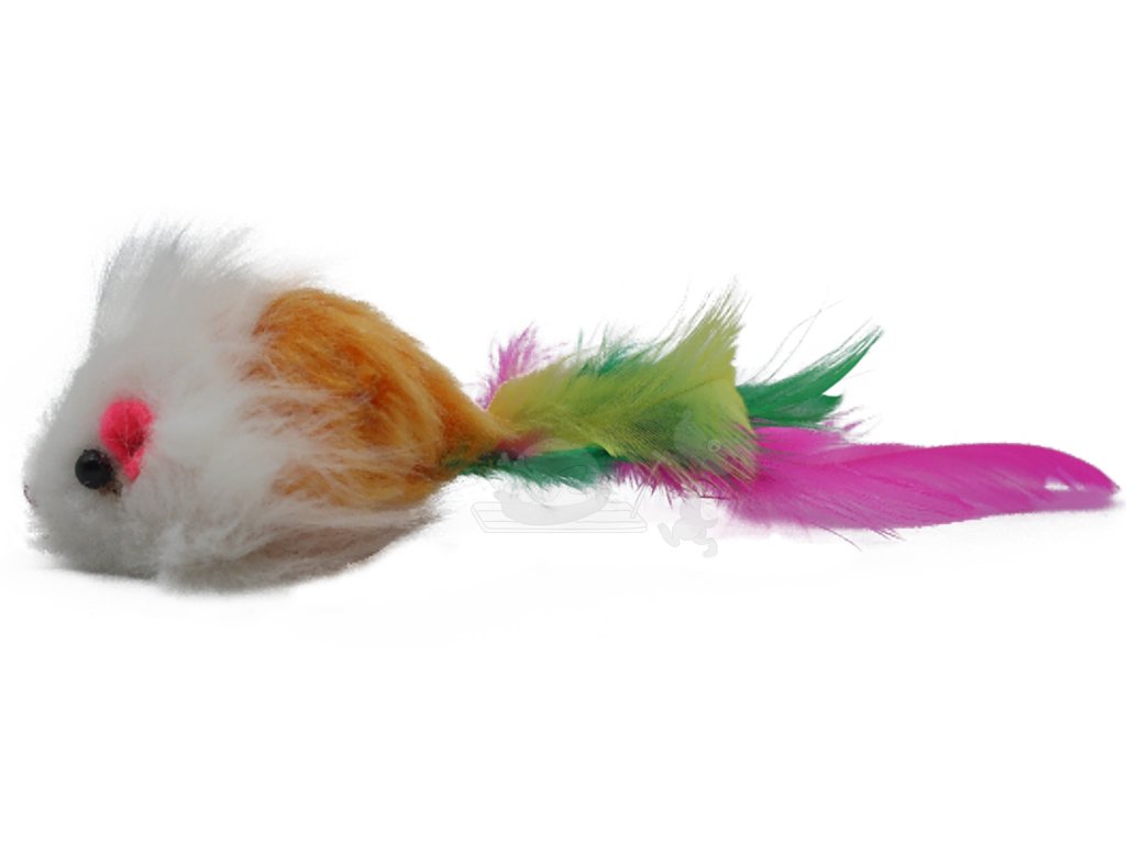 UNIQ PETS hračka pro kočky, plyšová myška s peřím 9cm