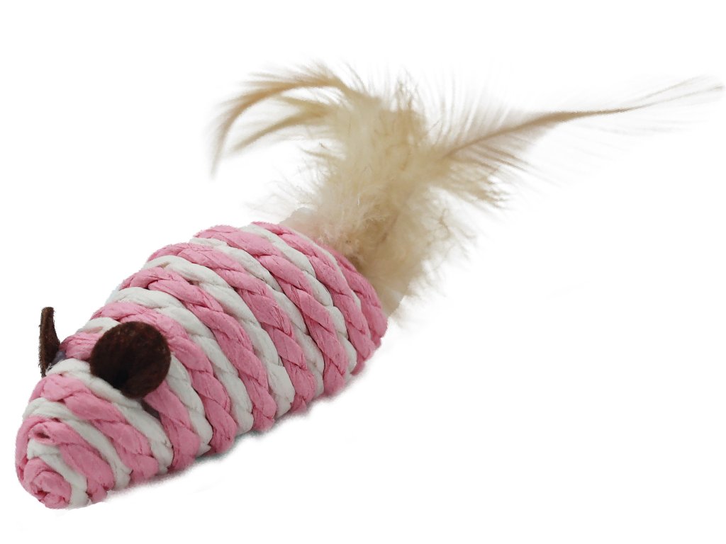 Hračka kočičí myška z přírodního lana s peřím je ideální hračka pro kočky, které milují hru na honbu. Poskytne jim hodiny zábavy a pomůže jim udržet se v kondici.