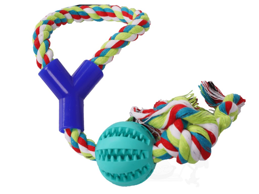 UNIQ PETS Psí hračka zubní míček tyrkysový na provázku se smyčkou mátovou vůní 38cm!