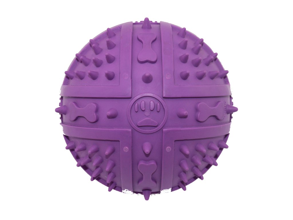 UNIQ PETS gumový pískací míč s hroty, vanilková vůně fialový 9cm