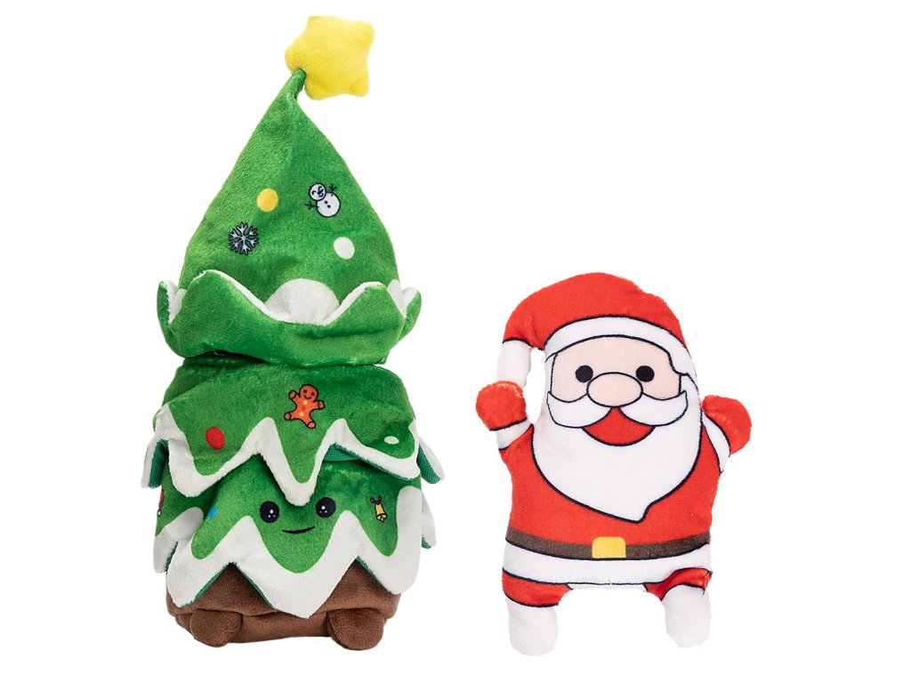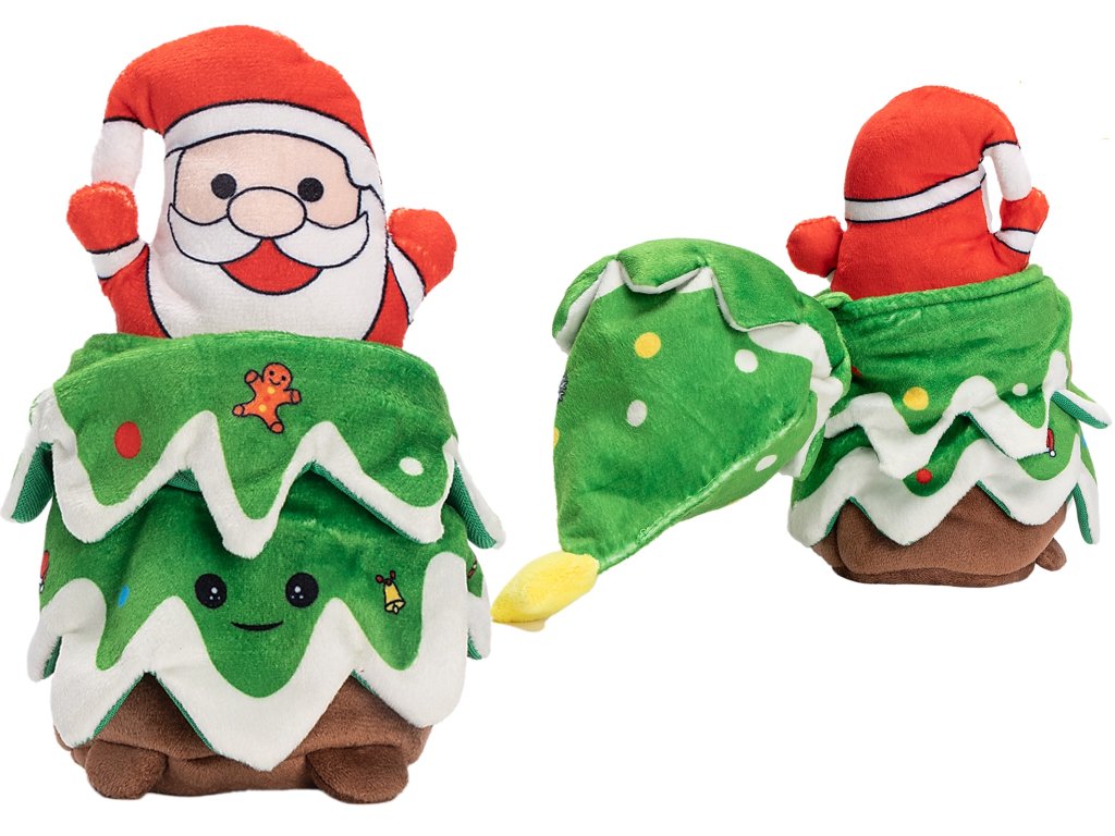 Měkká a slavnostní: Kombinace hebkého plyše a veselého designu Santy a stromečku je ideální pro mazlení i energické aportování.