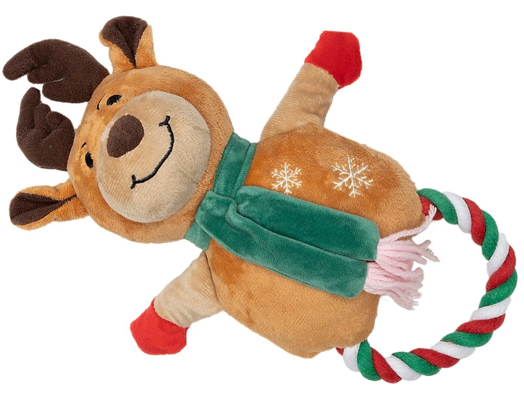 UNIQ PETS Vánoční sob s provazovým ouškem a pískadlem 25x35cm