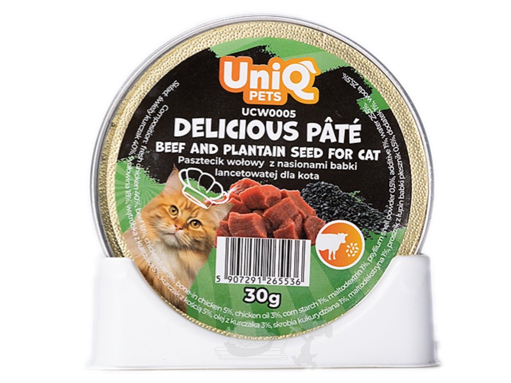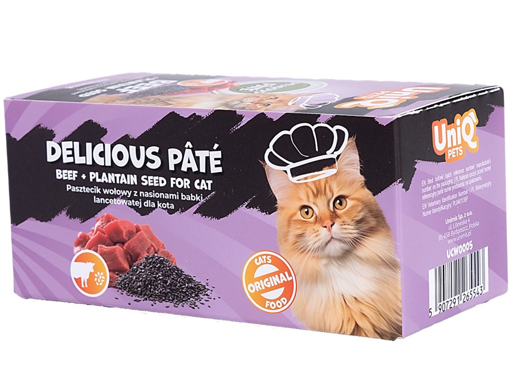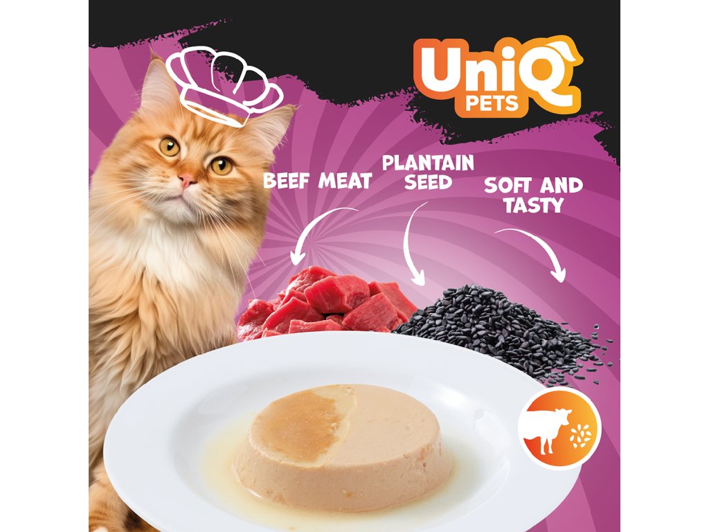 Každá kočka – ať je to hravé kotě nebo moudrý senior – si zaslouží královský přístup! S UNIQ PETS dopřejete svému mazlíčkovi nejen lahodné chvíle, ale i výživu, která pečuje o jeho zdraví zevnitř. ❤️ S jemnou paštikou plnou šťavnatého hovězího masa a prospěšných jitrocelových semínek bude každé krmení malou oslavou!