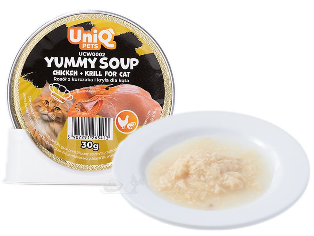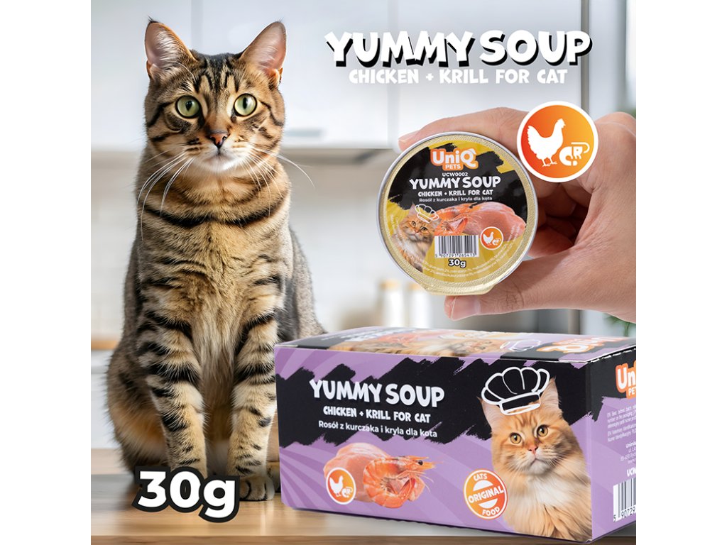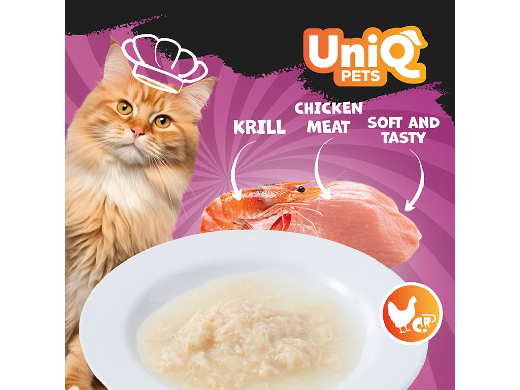 UNIQ PETS polévka pro kočky ROYAL CHICKEN 30g×8ks - Lahodná polévka s kuřecím masem a krillem. Královská polévka pro vaši kočičí majestátnost!