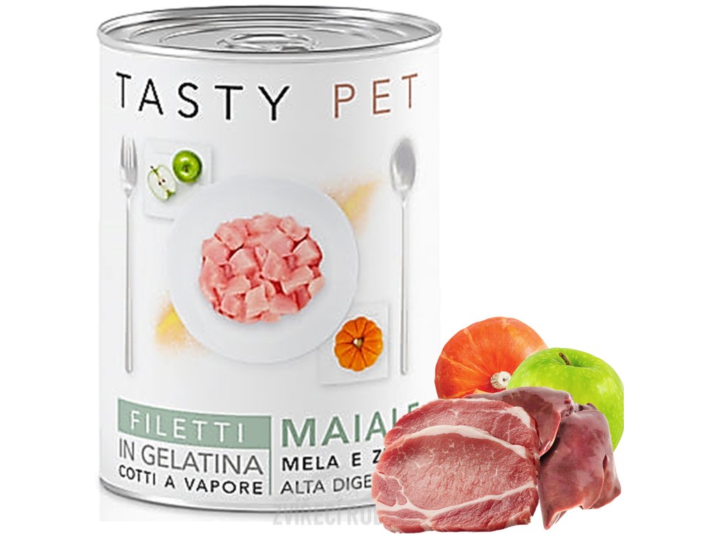 TASTY PET adult/puppy s vepřovým masem, játry, dýní a jablky 400g