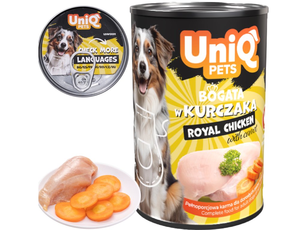 UNIQ PETS konzerva pro psy ROYAL kuřecí s mrkví 375g