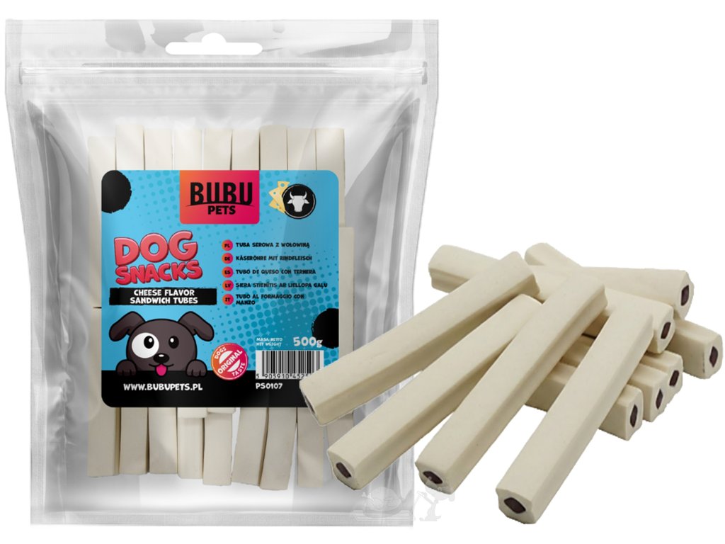 BUBU PETS Sýrové tyčinky s hovězím a glukosaminem 8 cm 500g