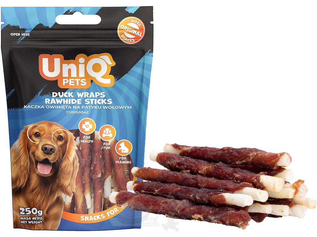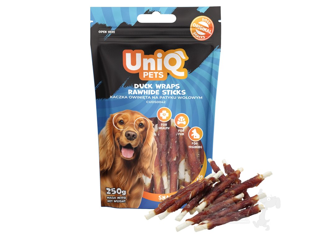 UNIQ Pets Hovězí tyčinky obalené kachním masem 250g
