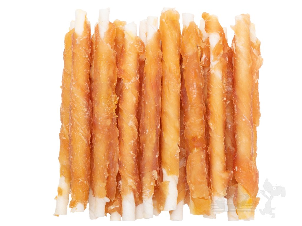 Masová pochoutka pro psy - tyčka z hovězí kůže obtočená plátkem lahodného kuřecího masa.