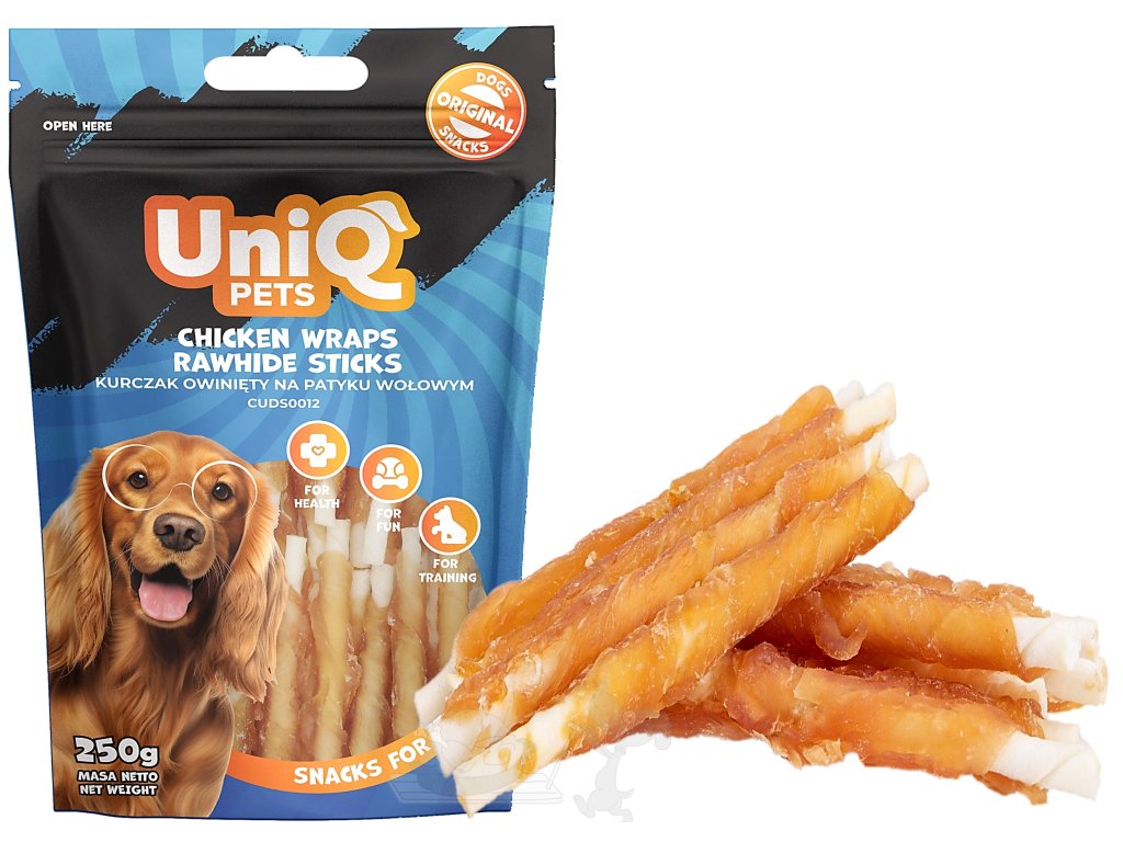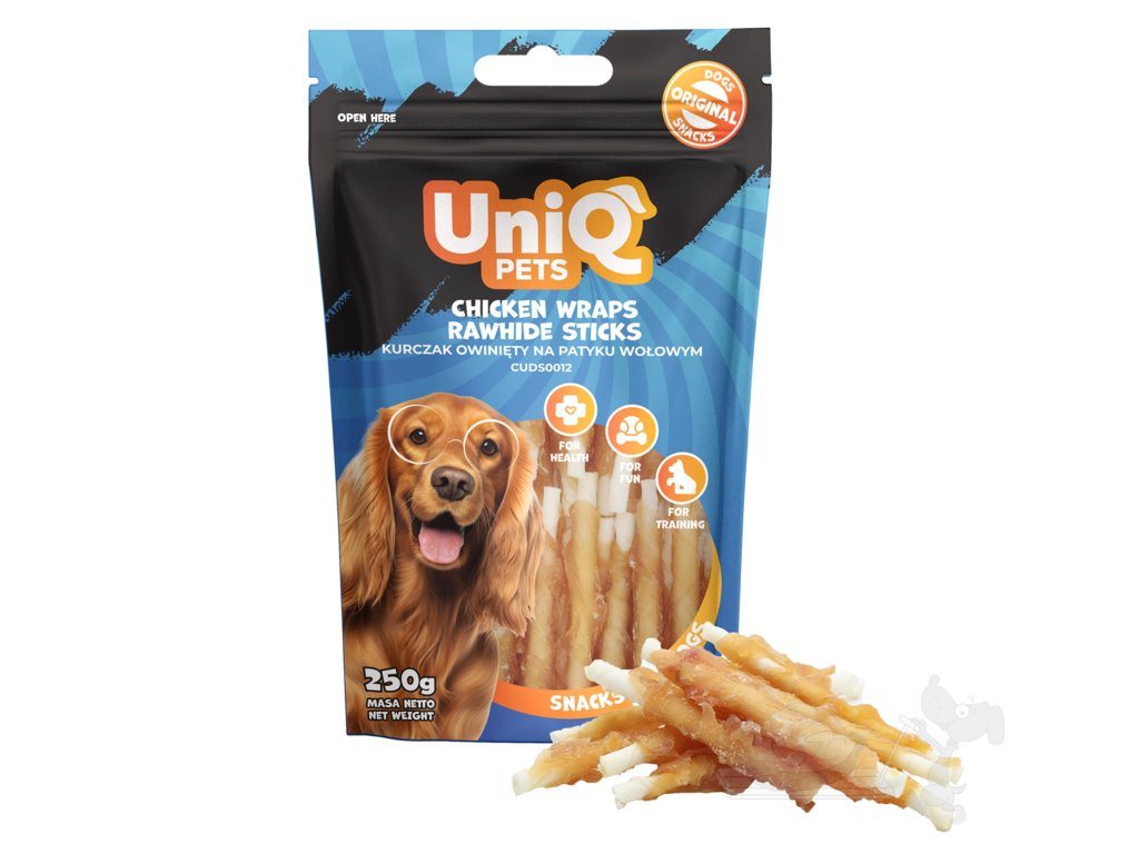 UNIQ Pets Hovězí tyčinky obalené kuřecím masem 250g