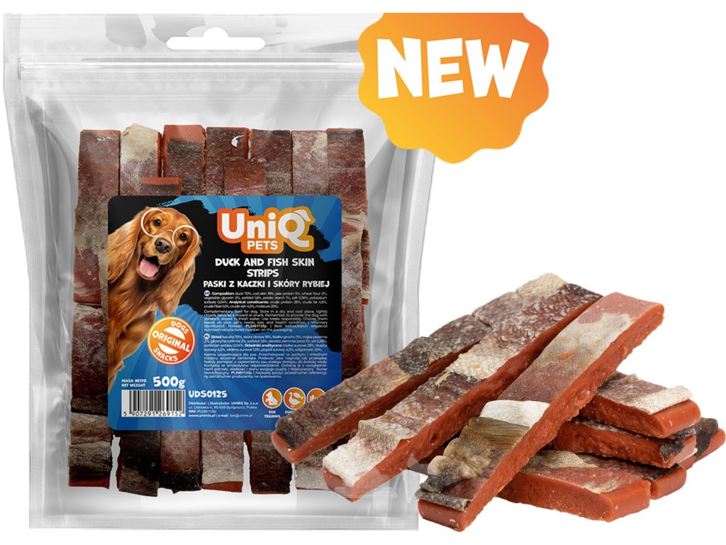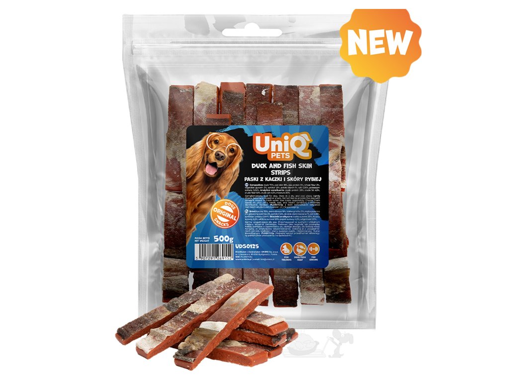 UNIQ PETS kachní masové proužky s tresčí kůží 500g