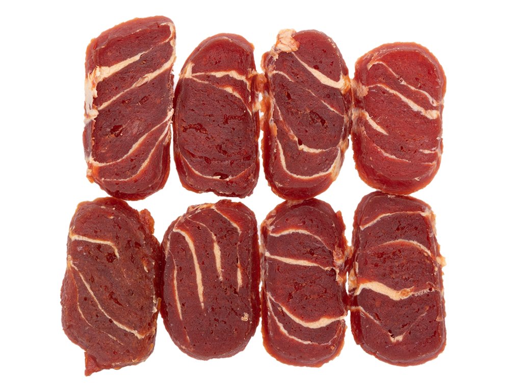 Dietní varianta: S obsahem tuku pouze 3 % jde o nízkotučné pamlsky pro psy, vhodné i pro jedince hlídající si váhu.