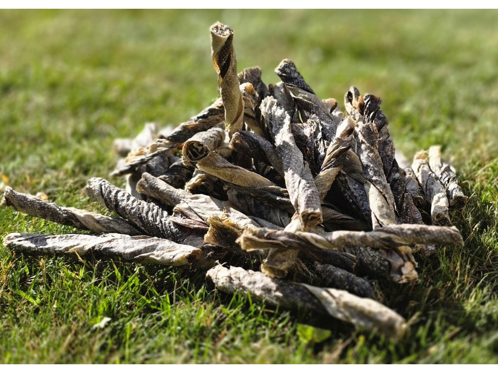 Vysoká kvalita bez kompromisů: Vyrobeno z čisté, vysoce kvalitní rybí kůže, bez umělých přísad, plnidel, konzervantů, obilovin a cukru. Jsou tak snadno stravitelné, bez rizika ucpání, které hrozí u surové kůže.