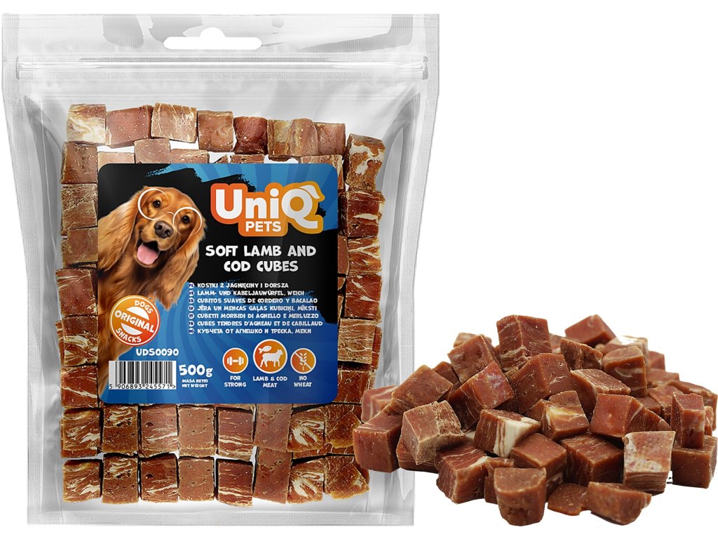 UNIQ PETS Mozaikové jehněčí kostky s treskou 500g (měkké)