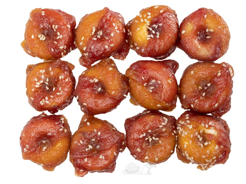 Dopřejte svému mazlíčkovi žvýkací radost, která chutná jako poctivá hostina! Zlatavé křupavé věnečky s kuřecího a jehněčího masa a jemnou vůní praženého sezamu.