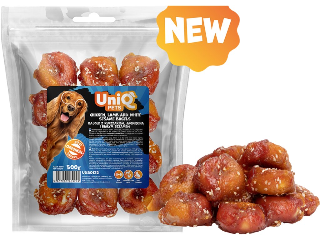 UNIQ PETS věnečky s kuřecím, jehněčím a bílým sezamem 500g