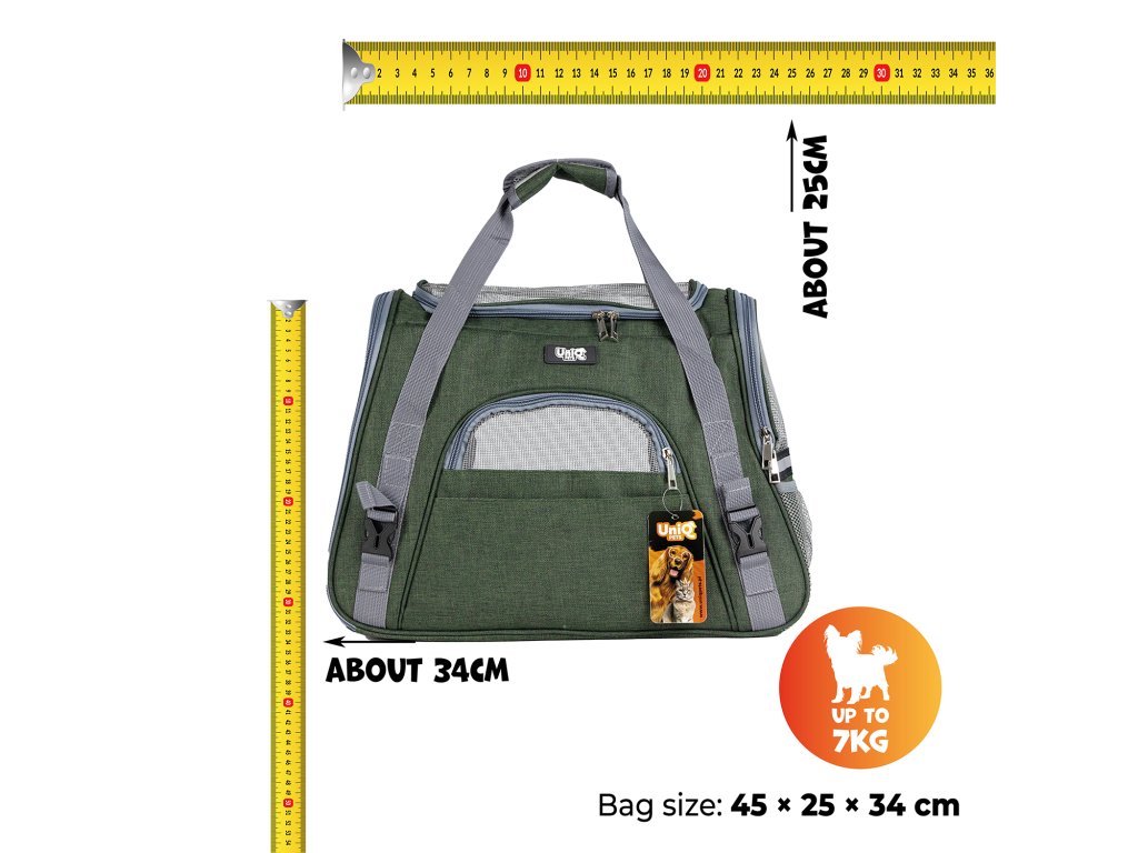 UNIQ PETS přepravní taška Furtote Petventure pro psy a kočky, zelená 45×25×34cm